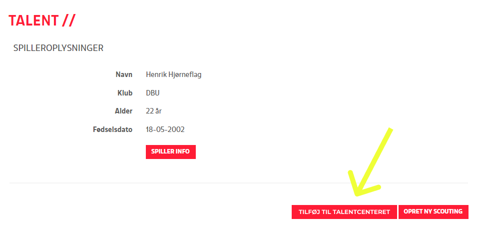 Alle danske fodboldspillere er registreret via deres klubber, og derfor er det ikke nødvendigt at oprette talenter. Du skal blot registrere spilleren som talentspiller!