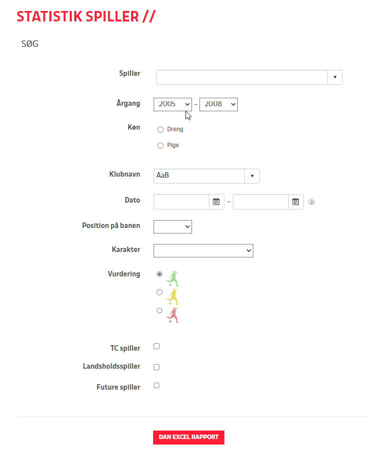 Her har du mulighed for at søge klub/spiller(e) ud fra mange forskellige kriterier.