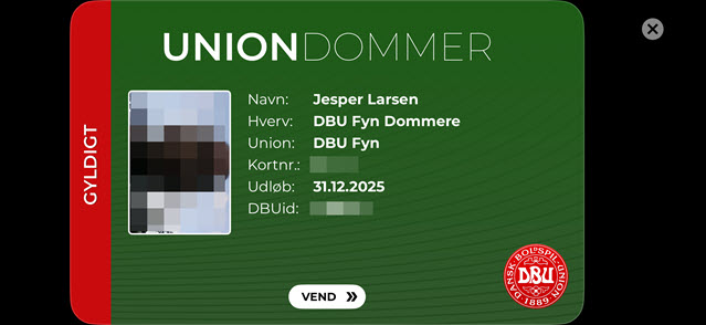Derudover findes der et dommer adgangskort, som kun giver adgang for dommeren selv. Det ser således ud: