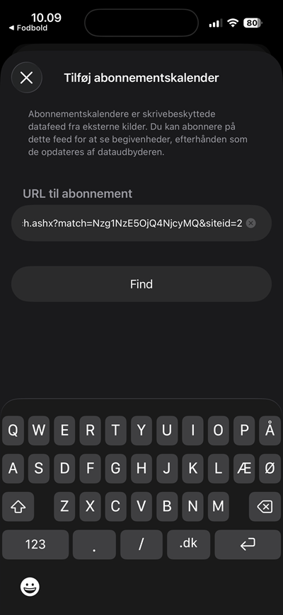 3. Efterfølgende får du et link, som du kan kopiere og indsætte i den kalender, du vil have - eller tilføje direkte til din enheds kalender ved at trykke 'Abonner'.