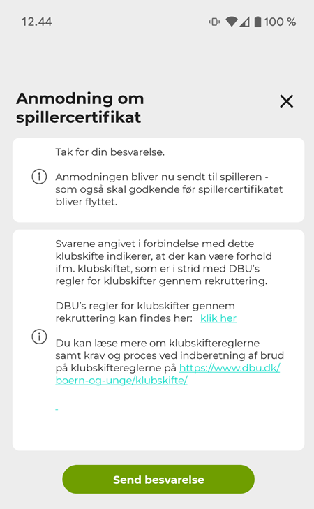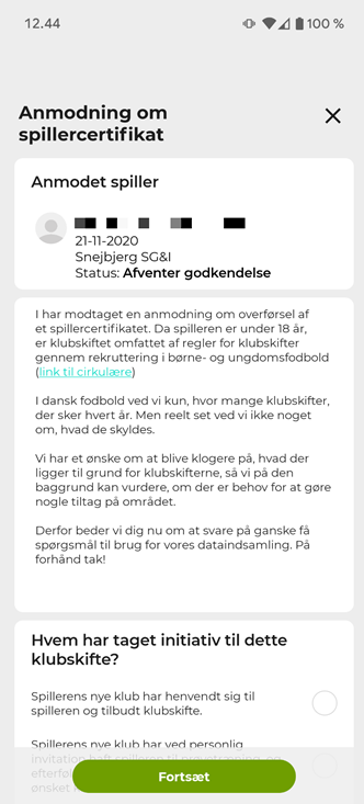 OBS: For spillere under 18 år - skal der i forbindelse med et klubskifte - svares på nogle spørgsmål. Læs mere om det her