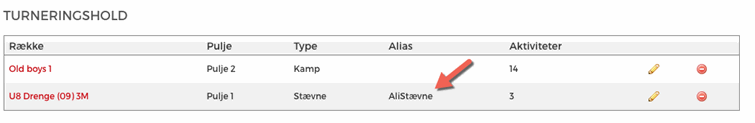 Det er nu blevet muligt at skrive et alias til stævner - som bliver vist på holdforsiden og under aktiviteter