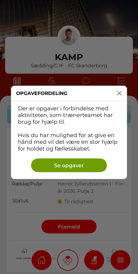 1. Når du byder ind på en opgave bliver du - ligesom for kampe - meldt 'til rådighed' for opgaven. Det er derfor træneren, der endeligt bestemmer hvem der tager opgaverne.