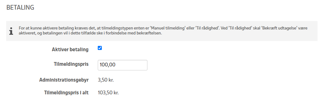 Hvis din klub har aktiveret betaling for dit hold, kan du tilføje betaling til aktiviteten.
