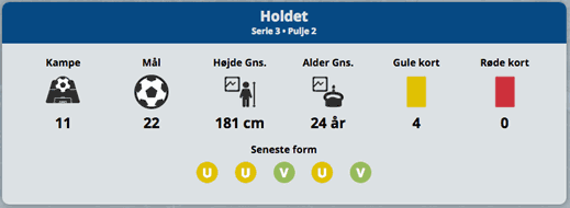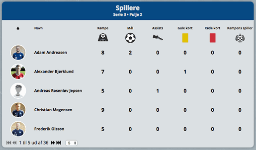 Tallene kommer fra Live-score/Kampfakta og dem som spillerne selv har opdateret via 'Mit DBU'