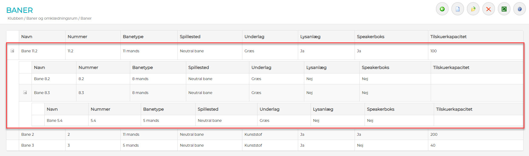 I eksemplet herunder er der en 11-mands hovedbane (Bane 11.2) som indeholder 2 stk 8-mands underbaner (Bane 8.2 og Bane 8.3).
