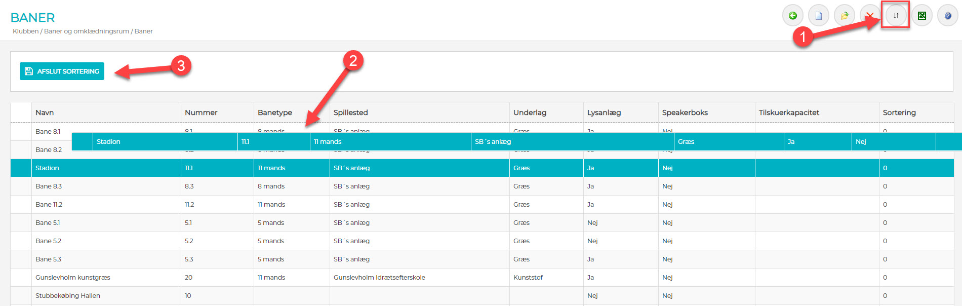 - Drag and drop de enkelte baner til den placering i sorteringen som der ønskes