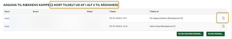 1. Tryk på Slet symbolet ud for den kortindehaver, du vil trække et kort tilbage fra.
