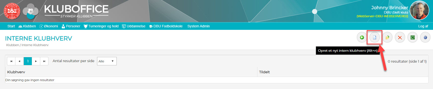 1) Klik på ikonet for Opret nyt klubhverv