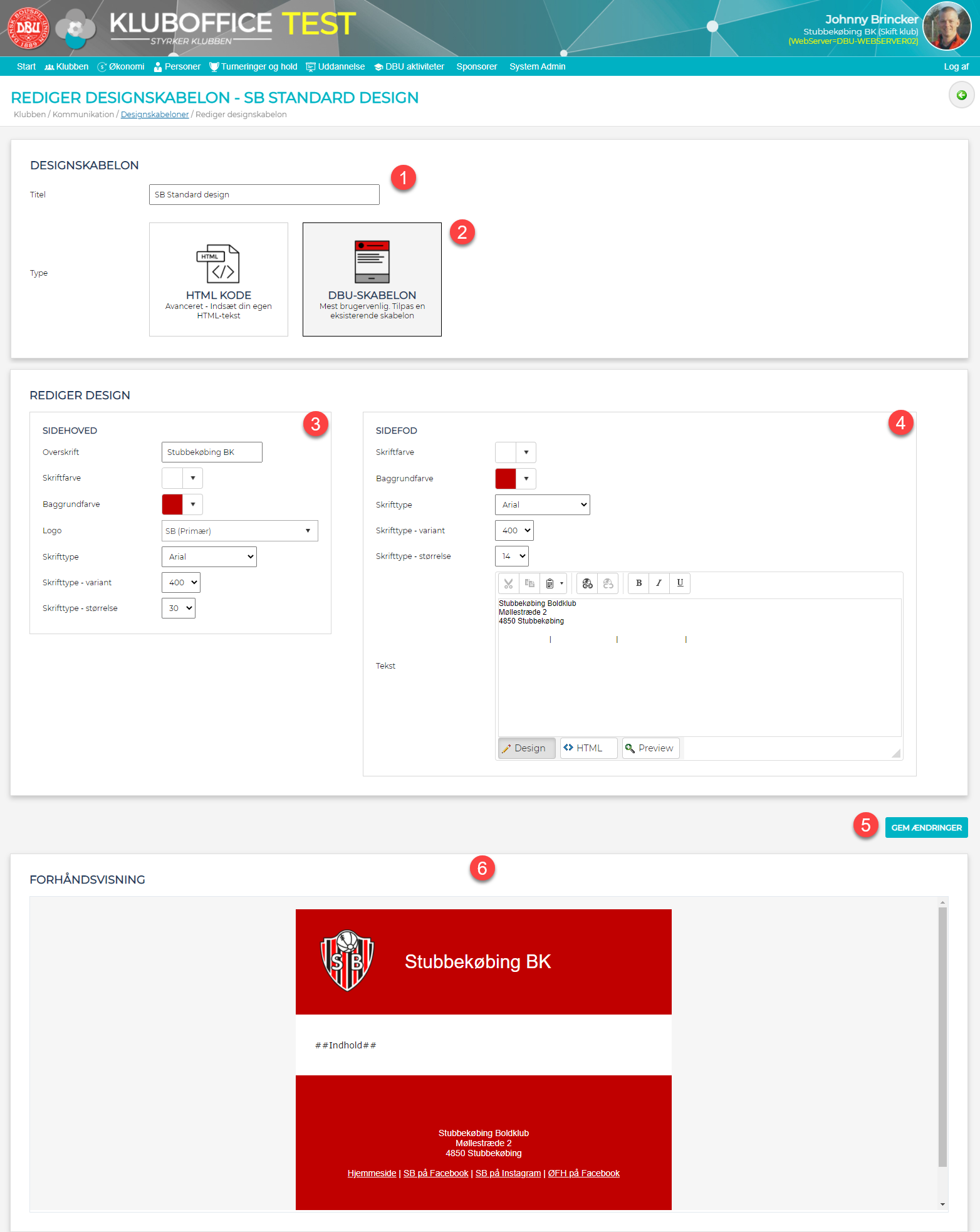 Menupunkt - "Klubben" -> "Kommunikation" -> "Designskabeloner"
