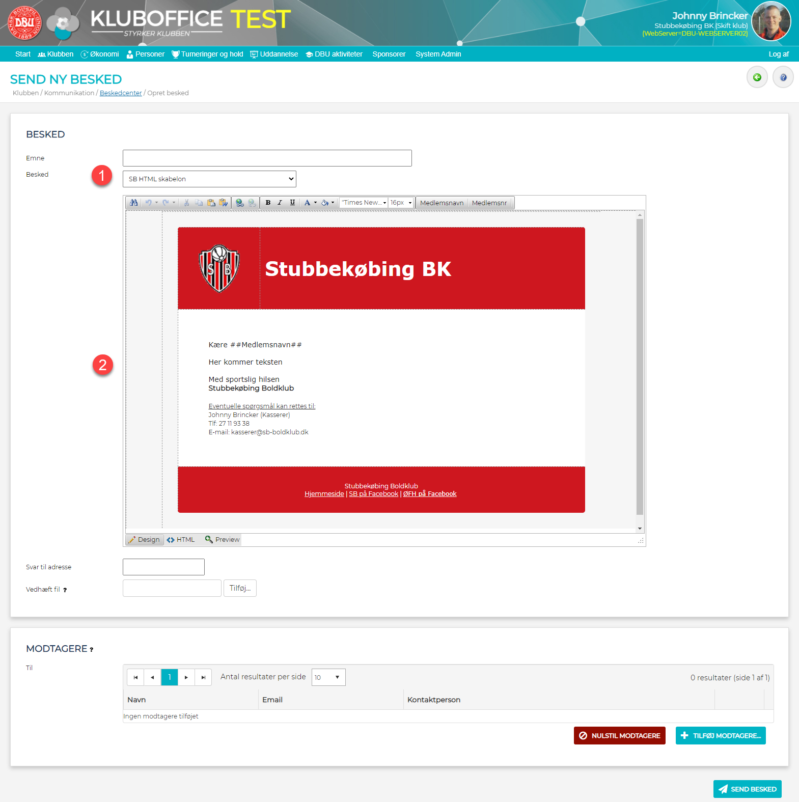 Når man så har valgt en designskabelon, så udfylder man blot indholdsteksten i email skabelonen, som så efterfølgende automatisk kobles sammen ved f.eks. udsendelse af en almindelig beskedudsendelse som nedenstående