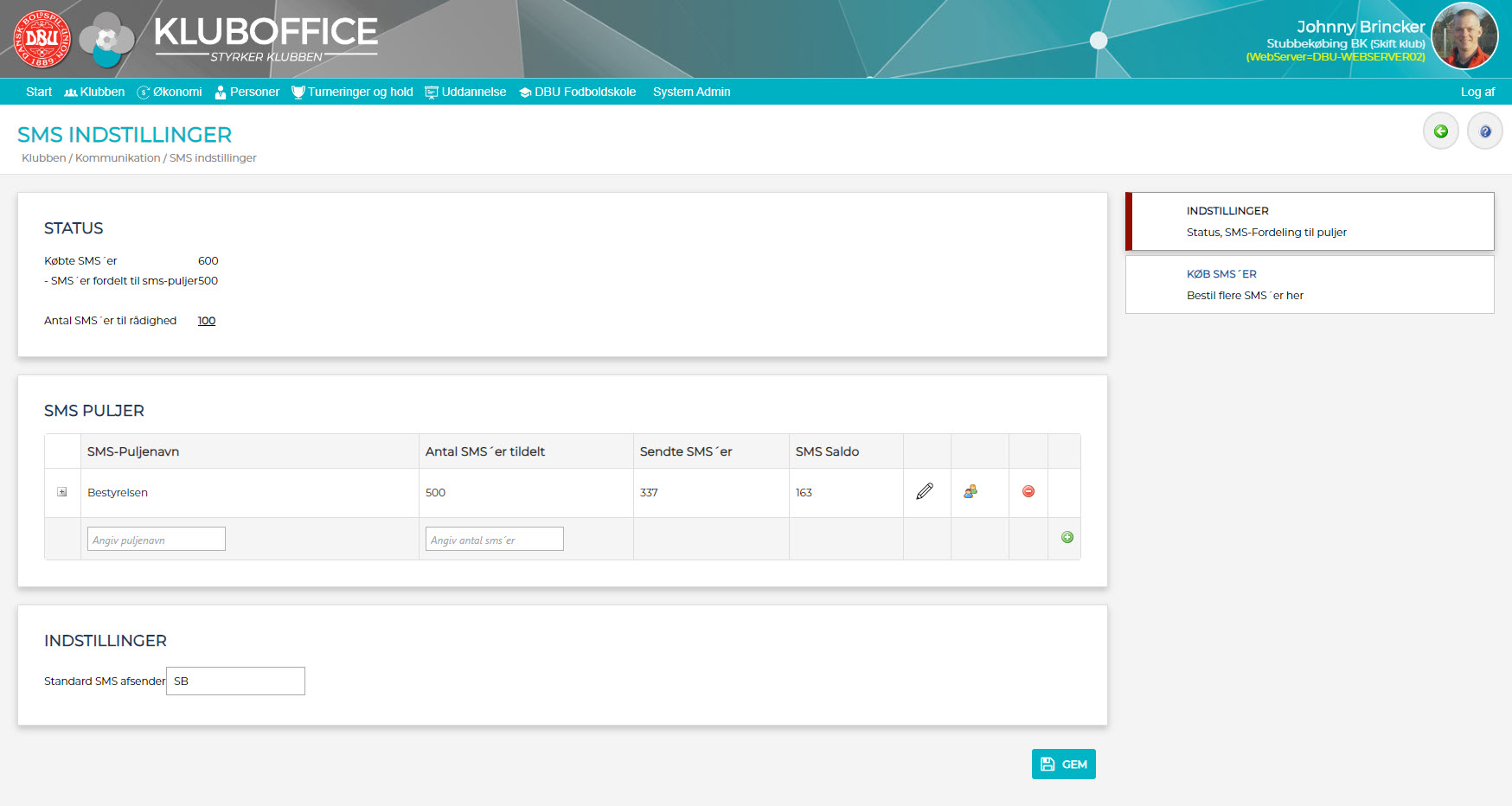 Det første der skal gøres er at aktivere selve SMS-modulet og I den forbindelse giver DBU de første 100 SMS'er gratis.