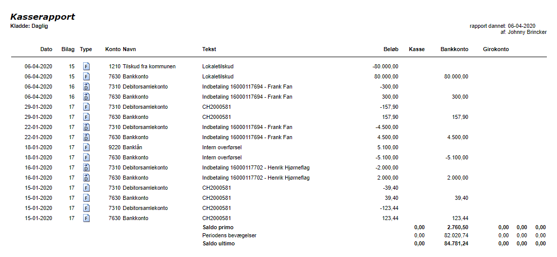 3) Kassekladden bliver nu bogført og herefter bliver kladden ryddet og er igen klar til nye indtastninger.