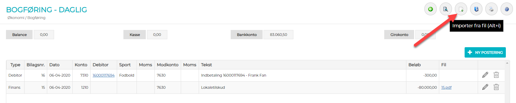 Har man en .csv, .xls eller .xlsx fil, er det muligt at importere denne til kassekladden
