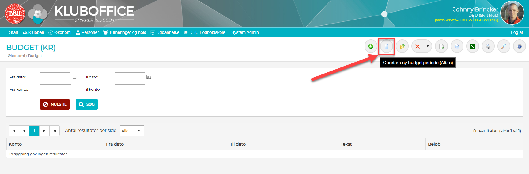 1) Tast Alt+n eller klik på ikonet for ny budgetperiode