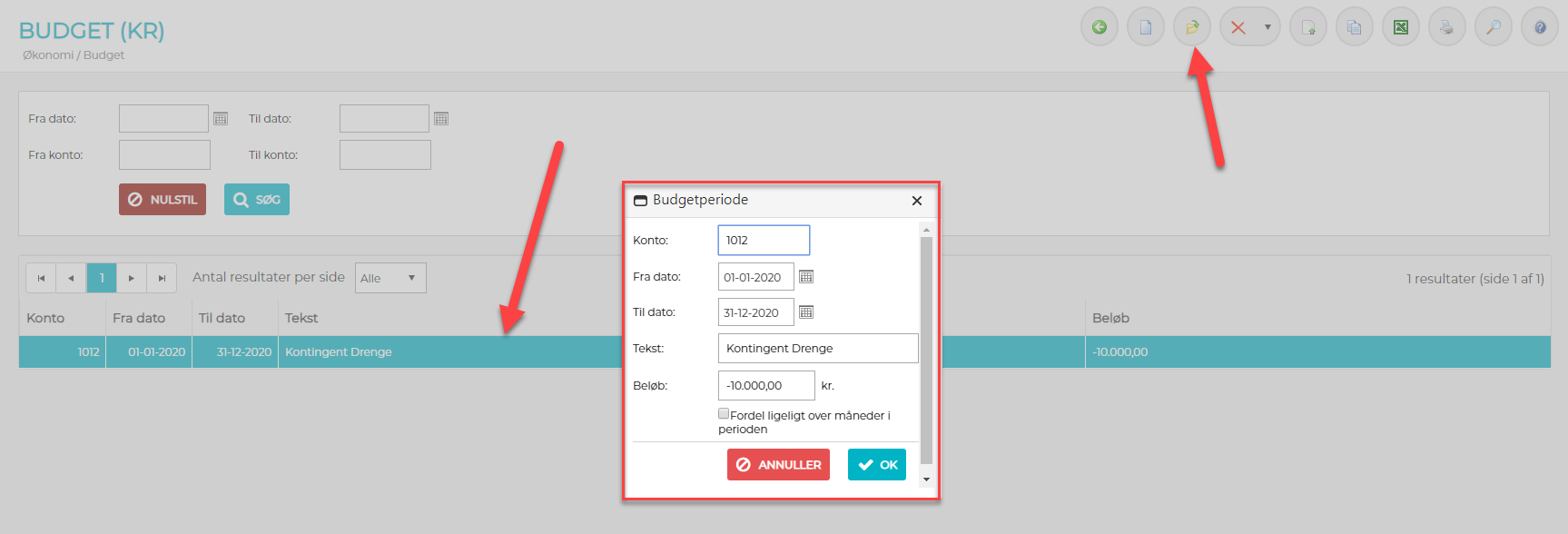Åben/Rediger en budgetperiode