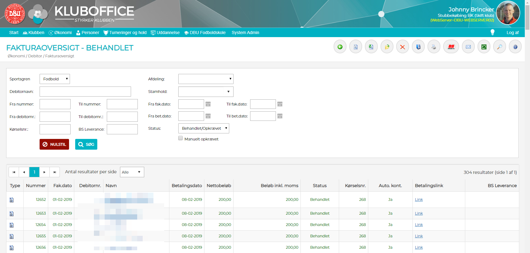 Menupunkt - "Økonomi" -> "Fakturaoversigt"