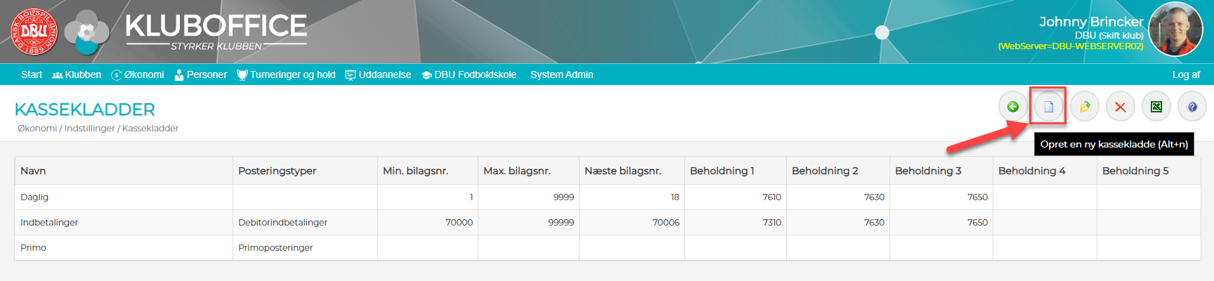 Før der kan bogføres i klubOffice, skal der oprettes en eller flere kasse-/bogføringskladder.