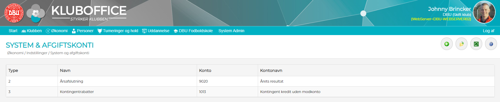 Hvis klubben danner fakturaer, via kontingentkørslen, skal der angives en konto til bogføring af kontingentrabatter. Dette gøres ved først at oprette en konto i kontoplanen, hvor rabatterne skal posteres og derefter angive denne konto under System- og afgiftskonti, som rabatkonto.