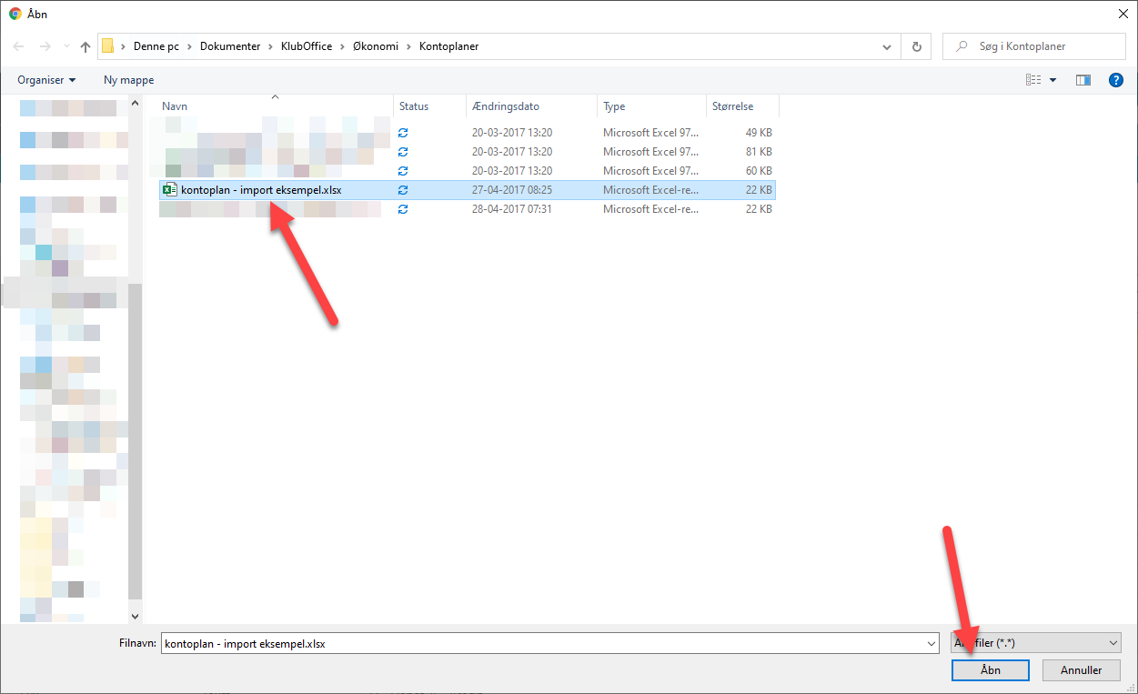 3) Find frem til den kontoplan som du ønsker at importere, marker filen, og klik på "Åbn"