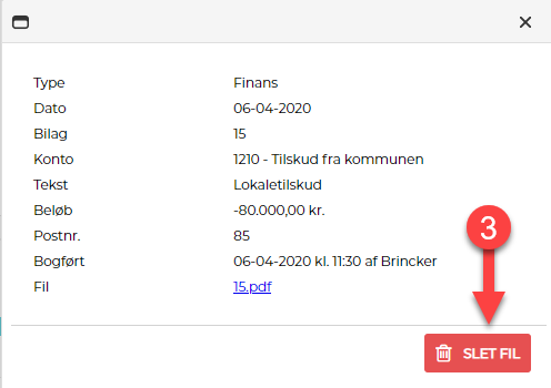 Slet bilagsfil fra postering