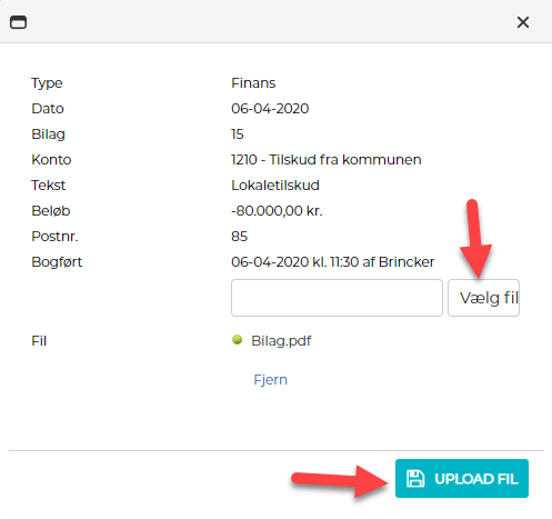 3) Vælg den bilagsfil som skal uploades og klik på "Upload fil"