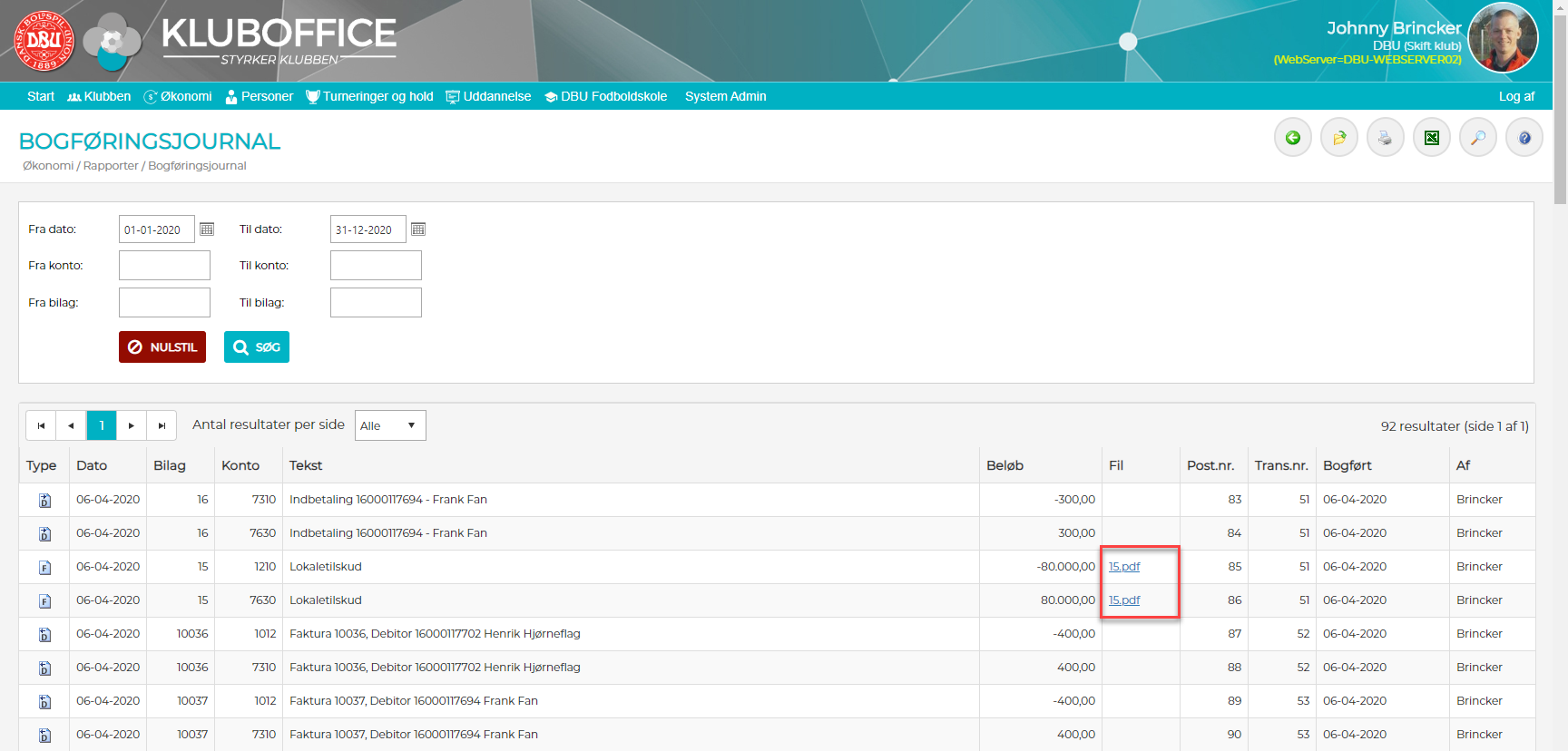 4) Bilagsfilen er nu uploadet til alle posteringer vedr. samme bilagsnr.