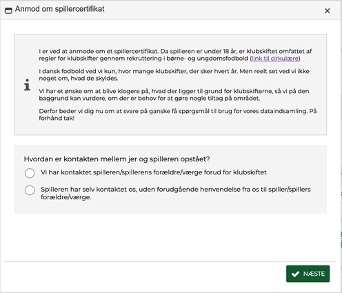 Svarer spilleren IKKE - via 'Mit DBU' eller Fodbold App'en - så vil spillercertifikatet IKKE skifte til den nye klub.