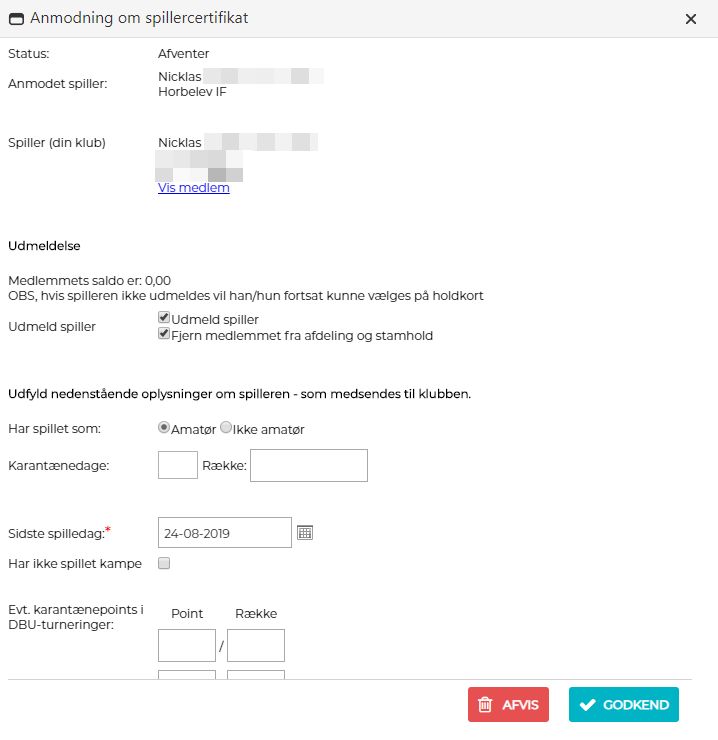 Hvis klubberne er blevet enige om at spillercertifikatet kan flyttes - så SKAL spilleren også svare via spillerens DBU-login på 'Mit DBU' eller Fodbold App'en - før spillercertifikatet skifter klub.