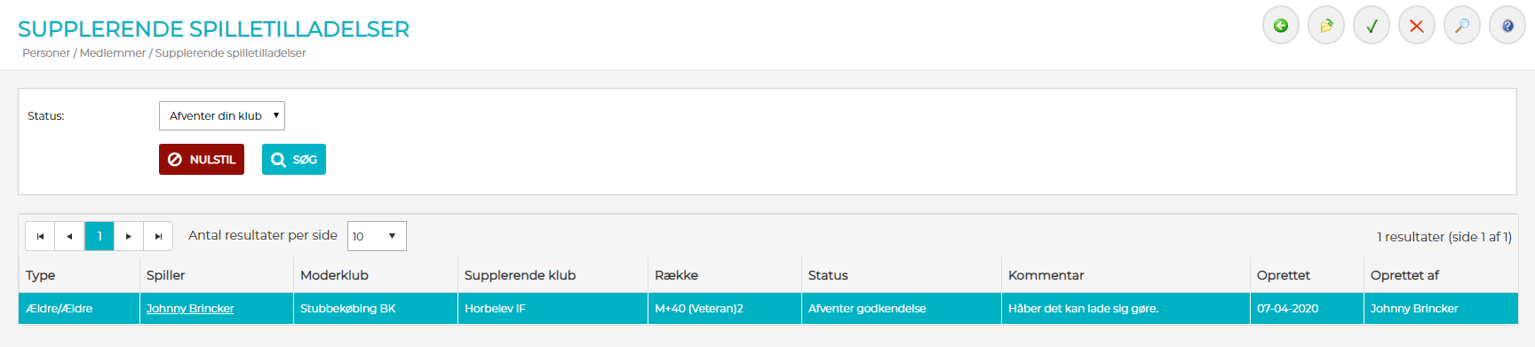 Hvis anmodningen bliver godkendt af alle - vil spilleren kunne se sine supplerende spilletilladelser i Fodboldpasset.