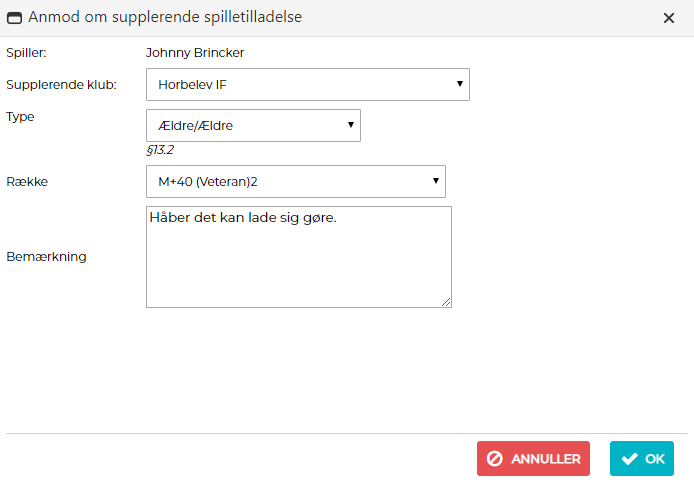 Spillere kan selv - via Mit DBU - starte en anmodning om supplerende spilletilladelse.