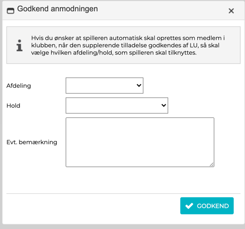 Det er også muligt - for klubben - at starte selve anmodningen op for spilleren.