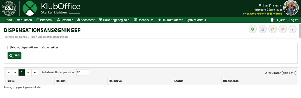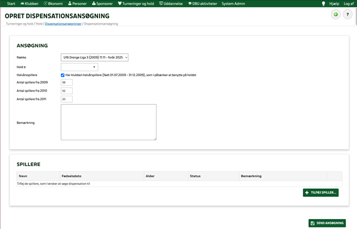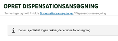 Her kan der oprettes og besvares evt. dispensationsansøgninger - som lokalunionerne har åbnet for. Det kunne f.eks. være aldersdispensationer.