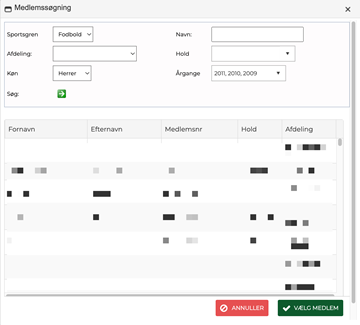 Spillere: Klik på 'Tilføj spillere' for at udvælge de spillere som ansøgningen skal medtage. Her er der som standard valgt køn og årgange - som passer til rækken/ansøgningen.