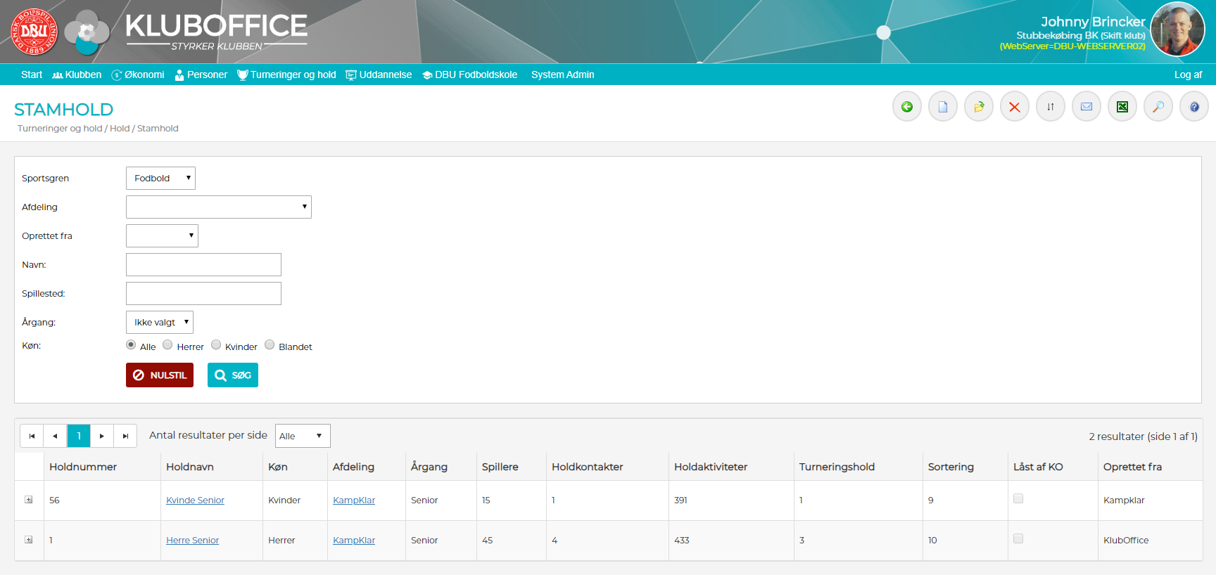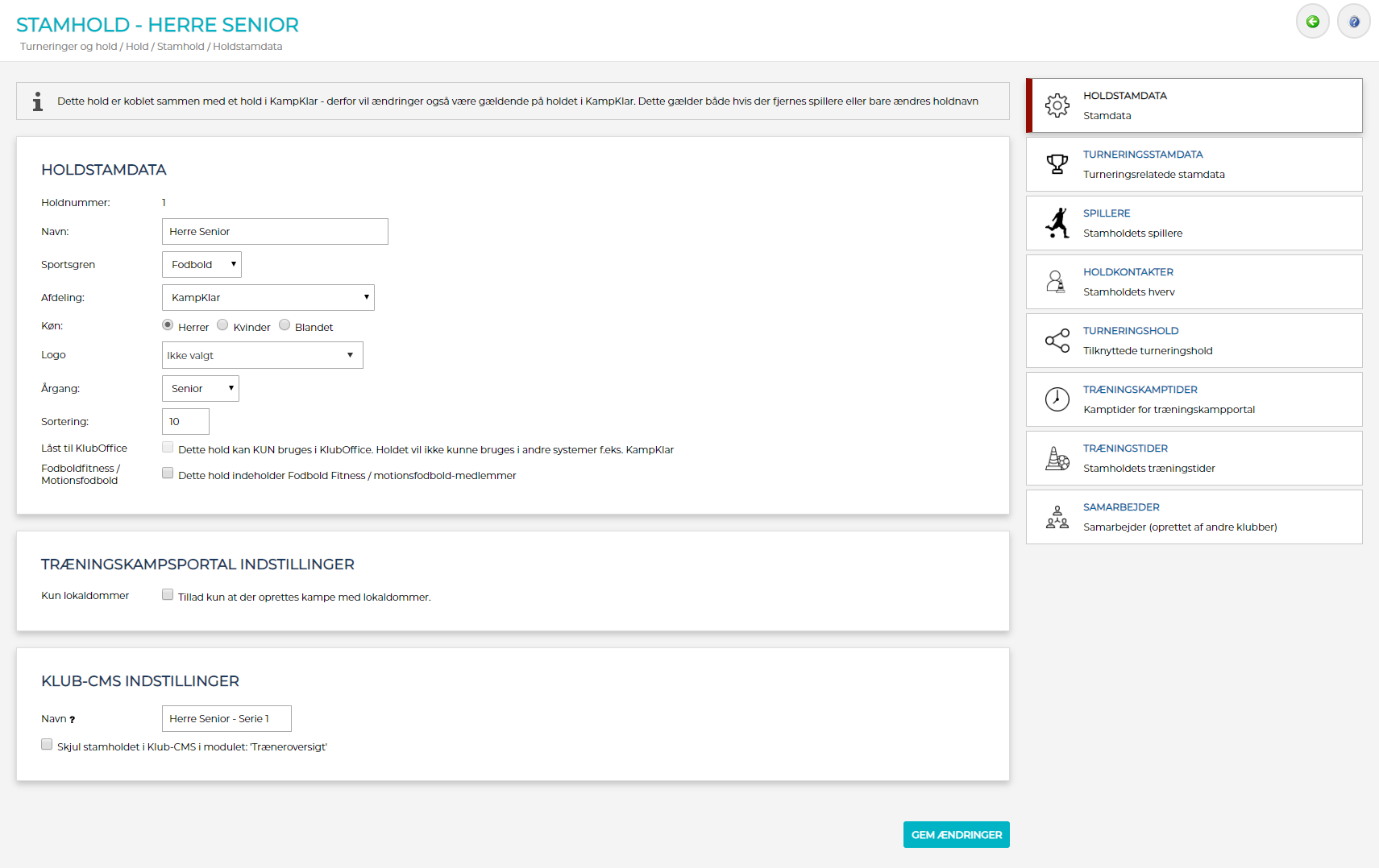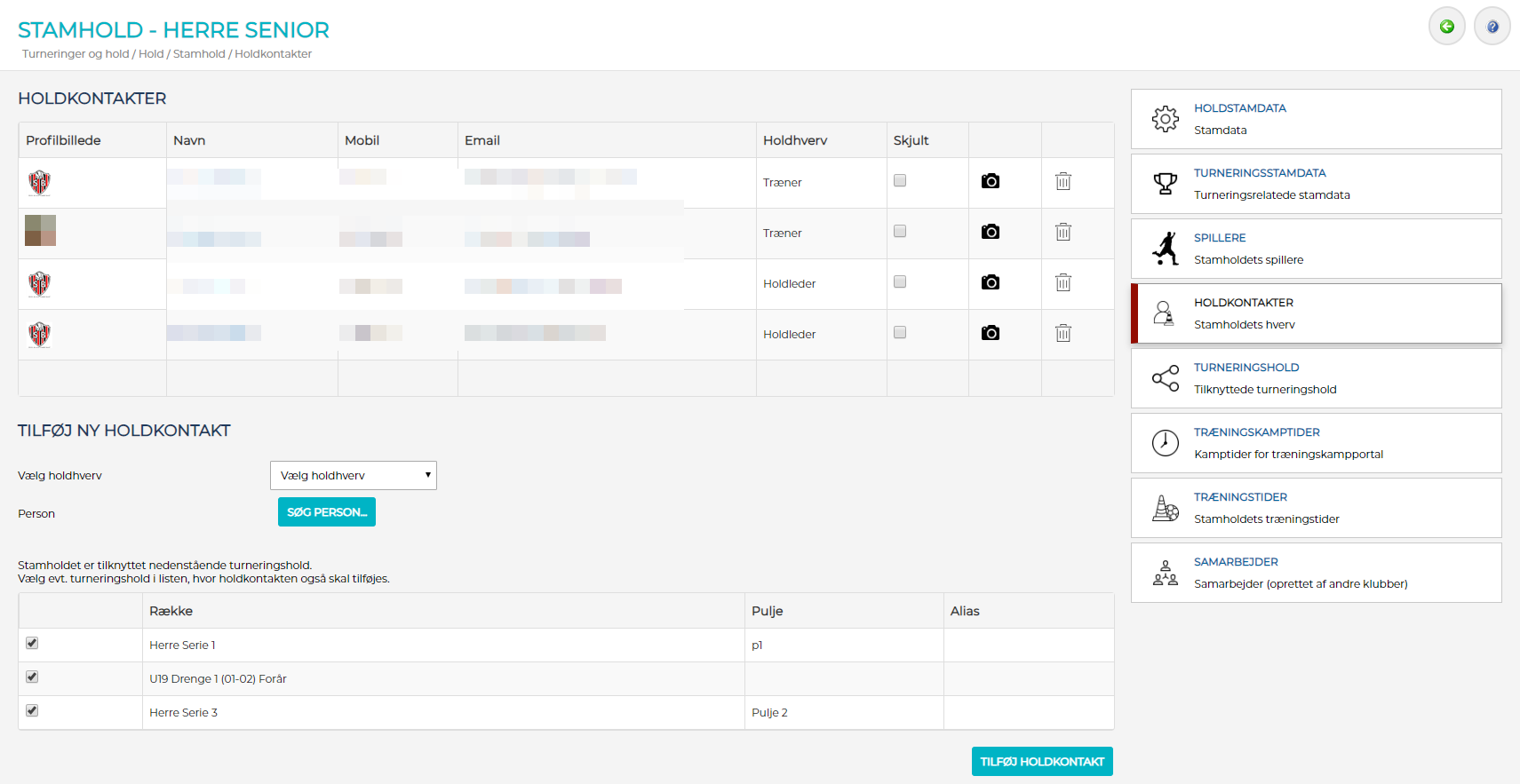 Holdkontakterne er også dem som bliver vist i Klub-CMS i det tilhørende stabs-modul