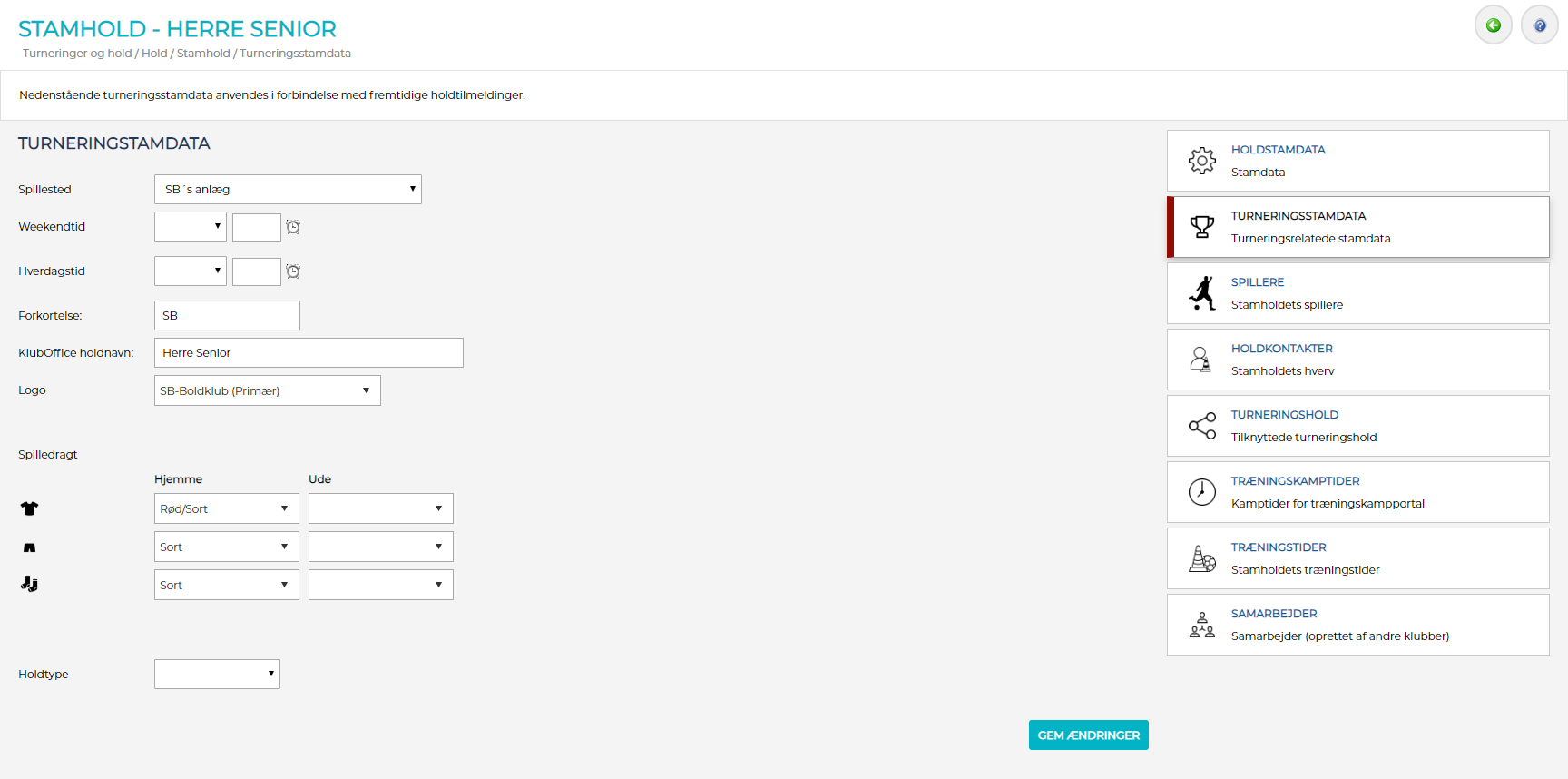 Her sættes stamdata for holdet - det vil sige ting som logo / afdeling / køn osv.