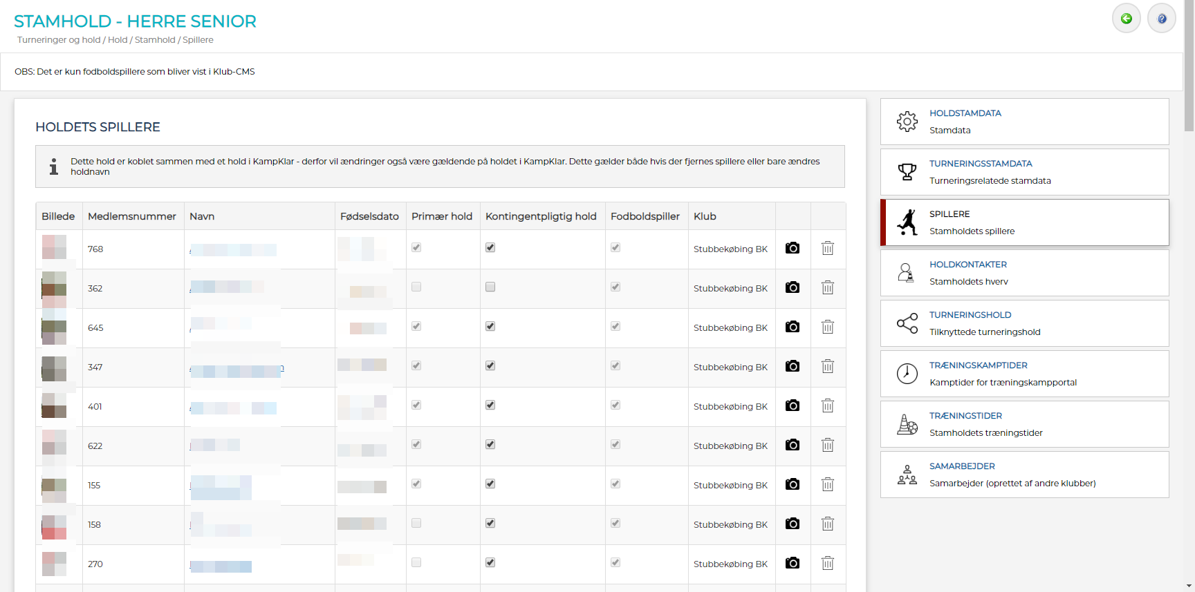 Spillerne er også dem som bliver vist i Klub-CMS i det tilhørende spiller-modul