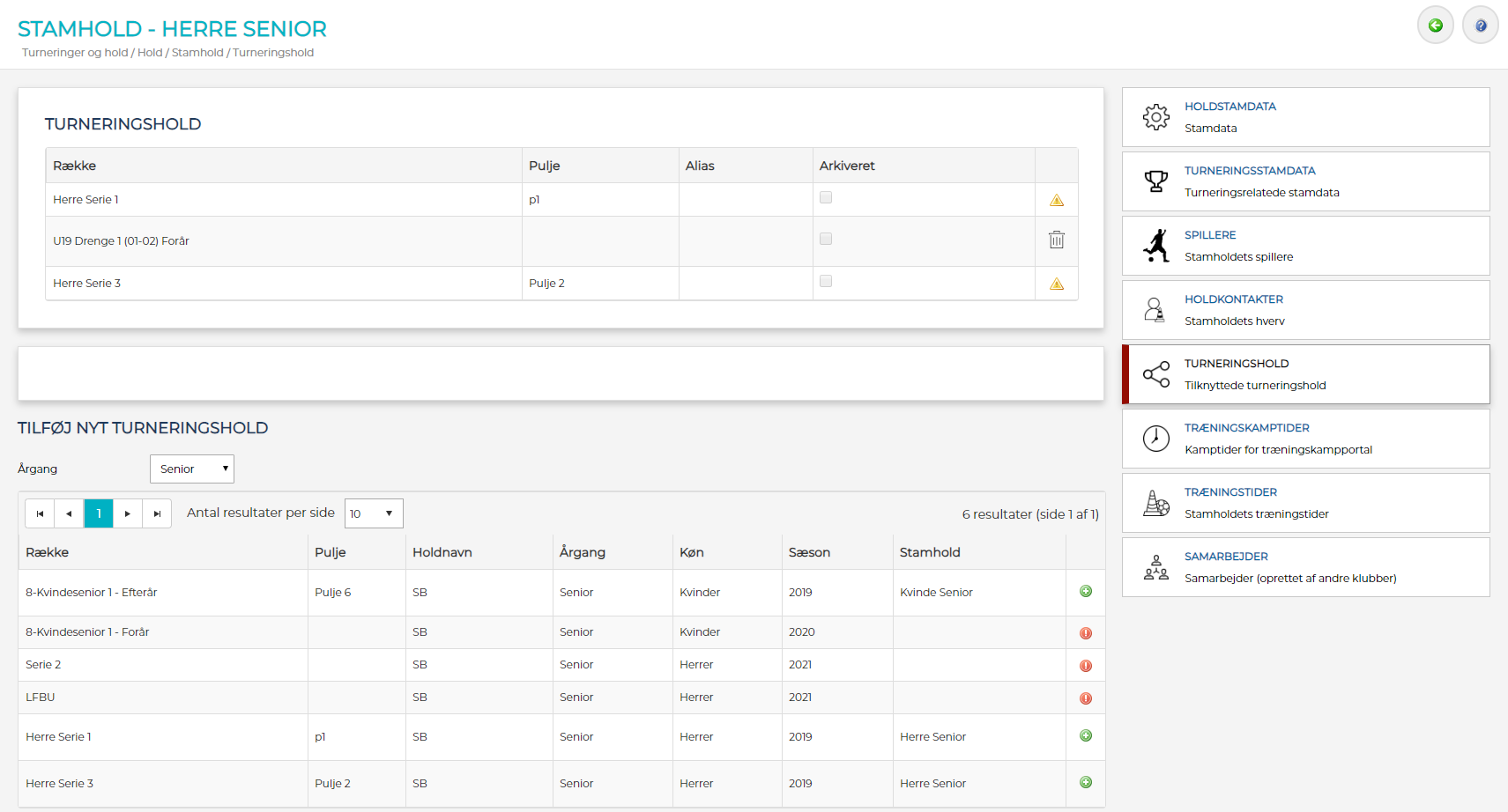 Her kan turneringshold tilknyttes stamholdet - hvis dette ikke er sket ved en holdtilmelding.