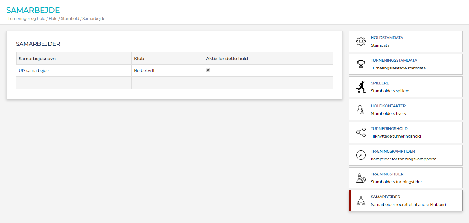 Her er det muligt at aktivere et oprettet samarbejde på stamholdet. Klik her for at læse mere om "Samarbejde"