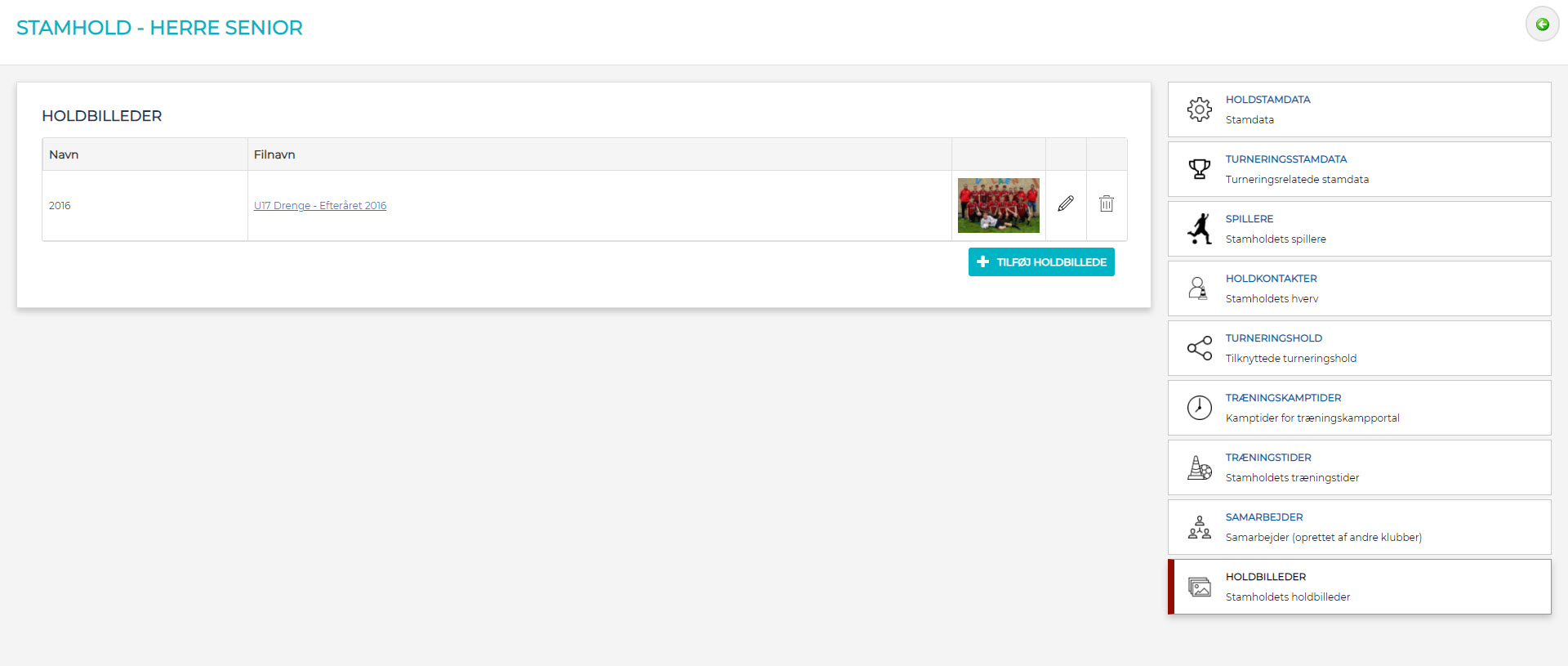 Her er det muligt at uploade et eller flere holdbilleder til et stamhold, som så vil kunne bruges af moduler i Klub-CMS, Kampklar m.v. efterhånden som der udvikles moduler til de forskellige områder.