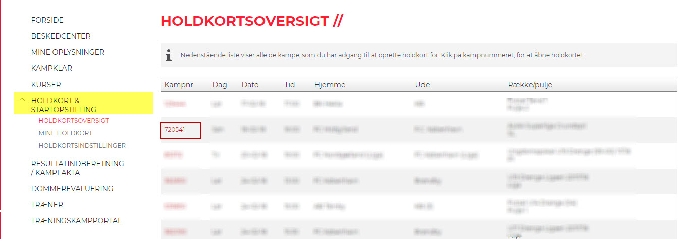 Holdkort via Mit DBU (elite kampe)