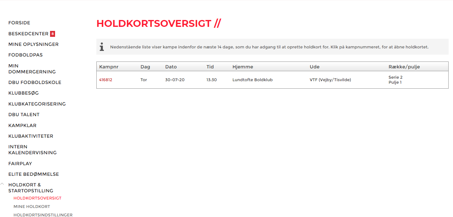 Holdkort via Mit DBU (LU kampe)